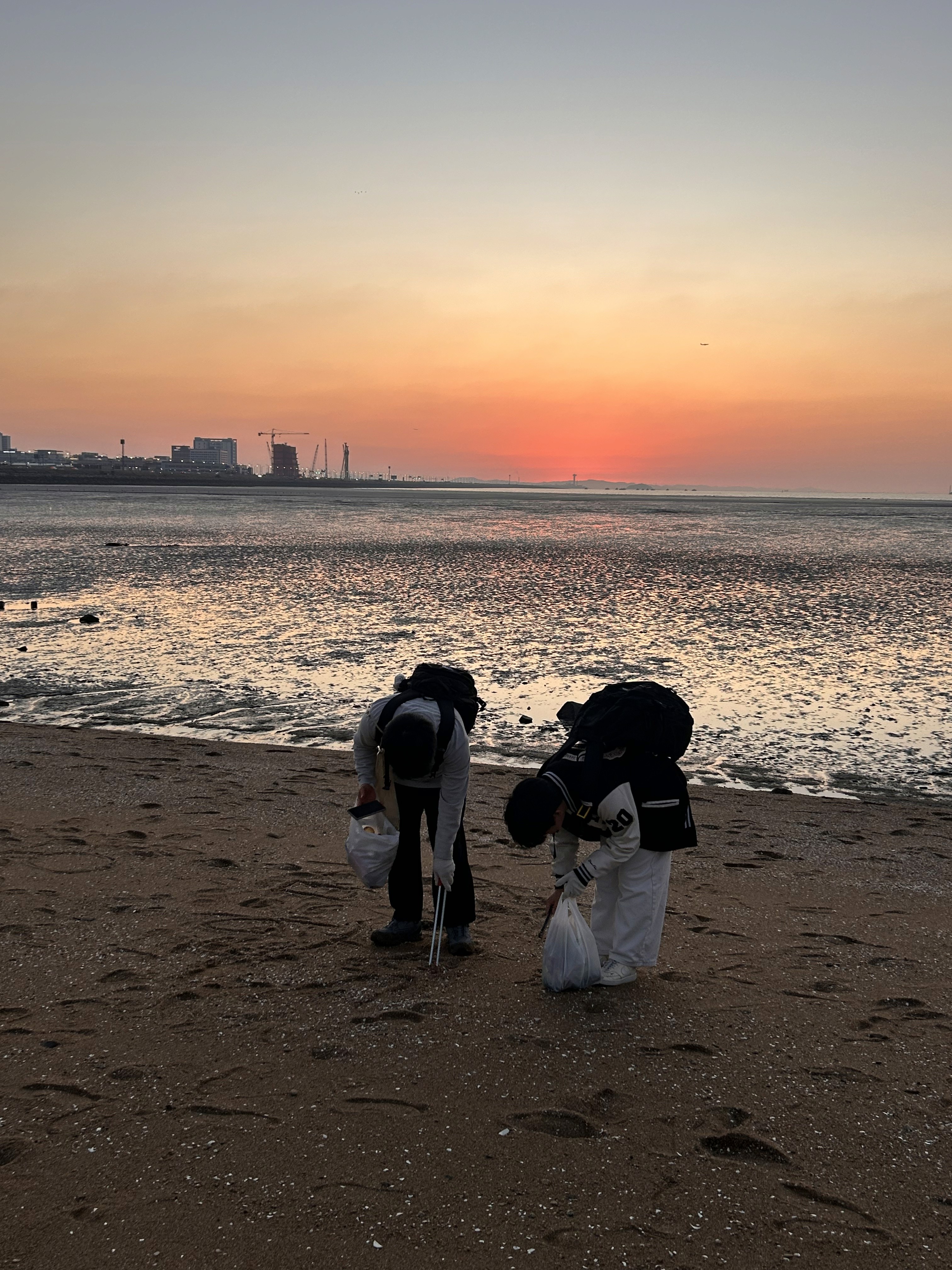 이번 활동은 학교 일과가 끝나고 진행해서 해질 무렵의 바다를 보면서 플로깅을 진행하였습니다. 가장 인상 깊었던 점은 1차 활동 때 가장 문제라고 했던 쓰레기의 종류와 2차 활동 때의 종류가 달랐던 점입니다. 1차는 해안가 중심이라서 사람들이 마시고 남긴 음료수, 패트병, 사용하고 남은 폭죽 잔해, 담배 꽁초 위주의 쓰레기가 많았습니다.