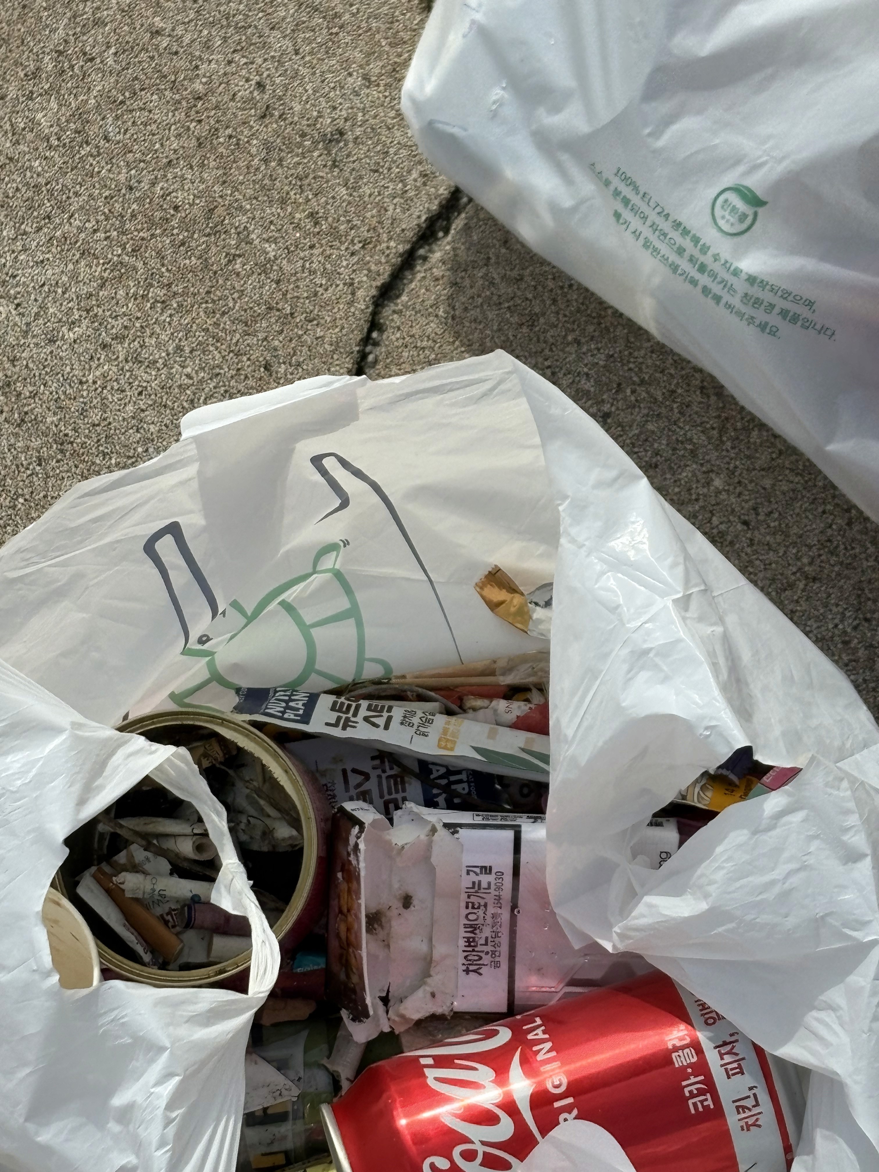 3차 플로깅을 마치고 나서 해안길을 다시 보니, 처음 왔을 때보다 전체 분위기가 훨씬 정돈된 느낌이었습니다. 크게 지저분했던 곳은 아니었지만 작은 쓰레기들이 없어지니 전체가 더 깔끔해 보이고 산책로가 한층 밝아진 것처럼 느껴졌습니다. 특히 벤치 주변이 눈에 띄게 정리되어 있었는데, 전에는 음료 컵이나 빨대가 조금씩 보였던 곳이 깨끗해져서 사람들이 더 편하게 앉아 쉬는 모습이 인상적이었습니다. 어떤 분은 우리가 플로깅하는 걸 보시고 어디서 왔냐고 물어봐주시고 관심가져주시며 멋있다고 해주시면서 고맙다고 말해주셔서 조금 뿌듯했습니다.
