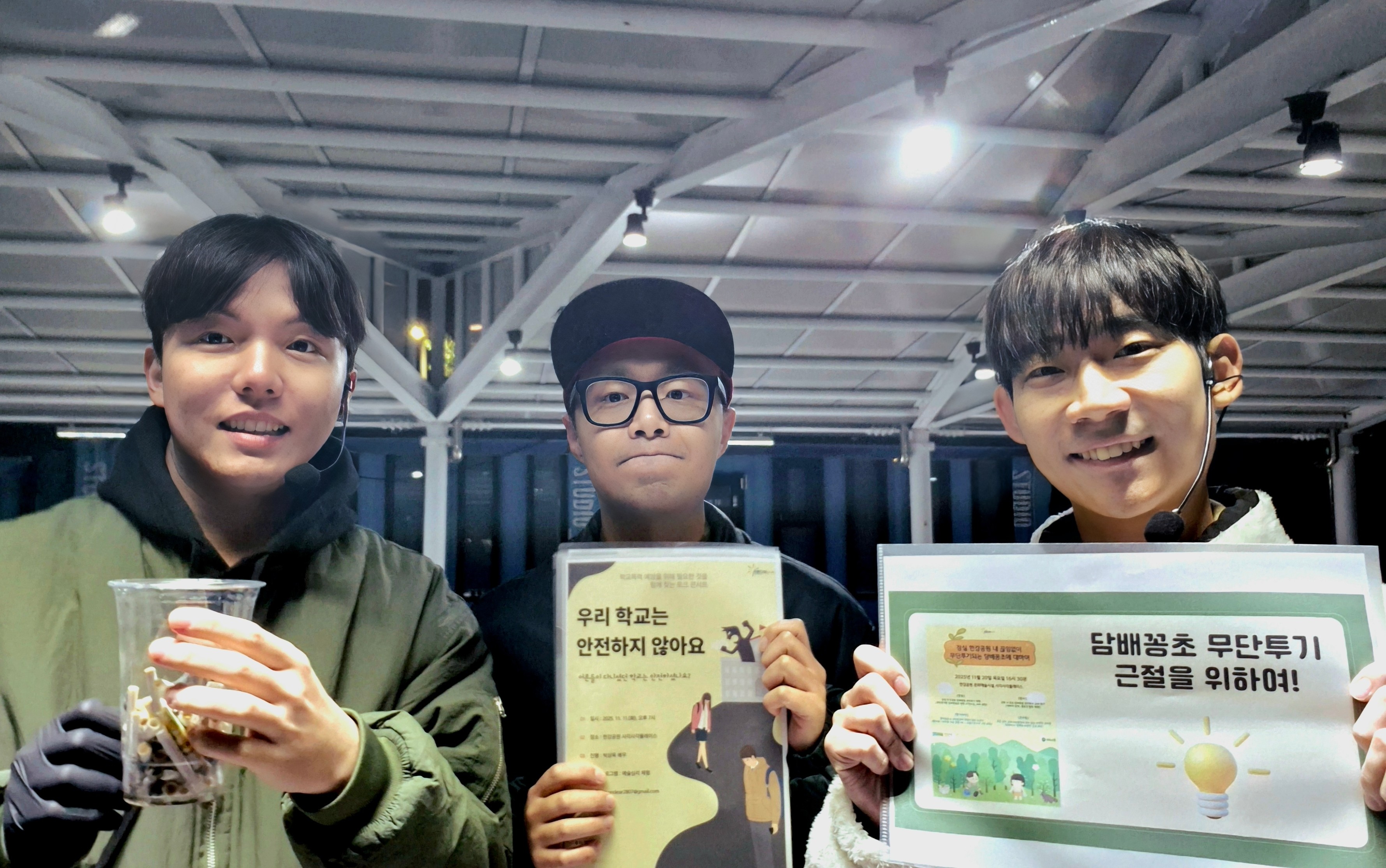 많은 사람이 즐겁고 행복하게 이용하는 한강. 멀리서 볼 때는 한강이 꽤 깨끗해 보였는데, 정화 활동을 시작한 후로는 충격이었습니다. 한강은 시민들이 휴식을 즐기는 공간일 뿐만 아니라, 고양이와 너구리 같은 야생동물들도 함께 살아가는 생태 공간입니다. 많은 생명이 공존하는 곳입니다. 제가 무단투기된 담배꽁초를 주워 담던 통에 고양이 한 마리가 다가와서 냄새를 맡던 모습이 아직 눈에 선합니다. 사람들에게는 작고 사소하게 보이는 꽁초 하나가 이곳의 동물들에게는 큰 위험이 될 수도 있습니다. 이번 활동을 통해 환경을 지키는 일은 거창한 일이 아니라, 일상에서 실천하는 작은 행동에서 시작된다는 것을 다시 한번 느끼고 많은 사람에게 알리고 함께 활동하고 싶어졌습니다.