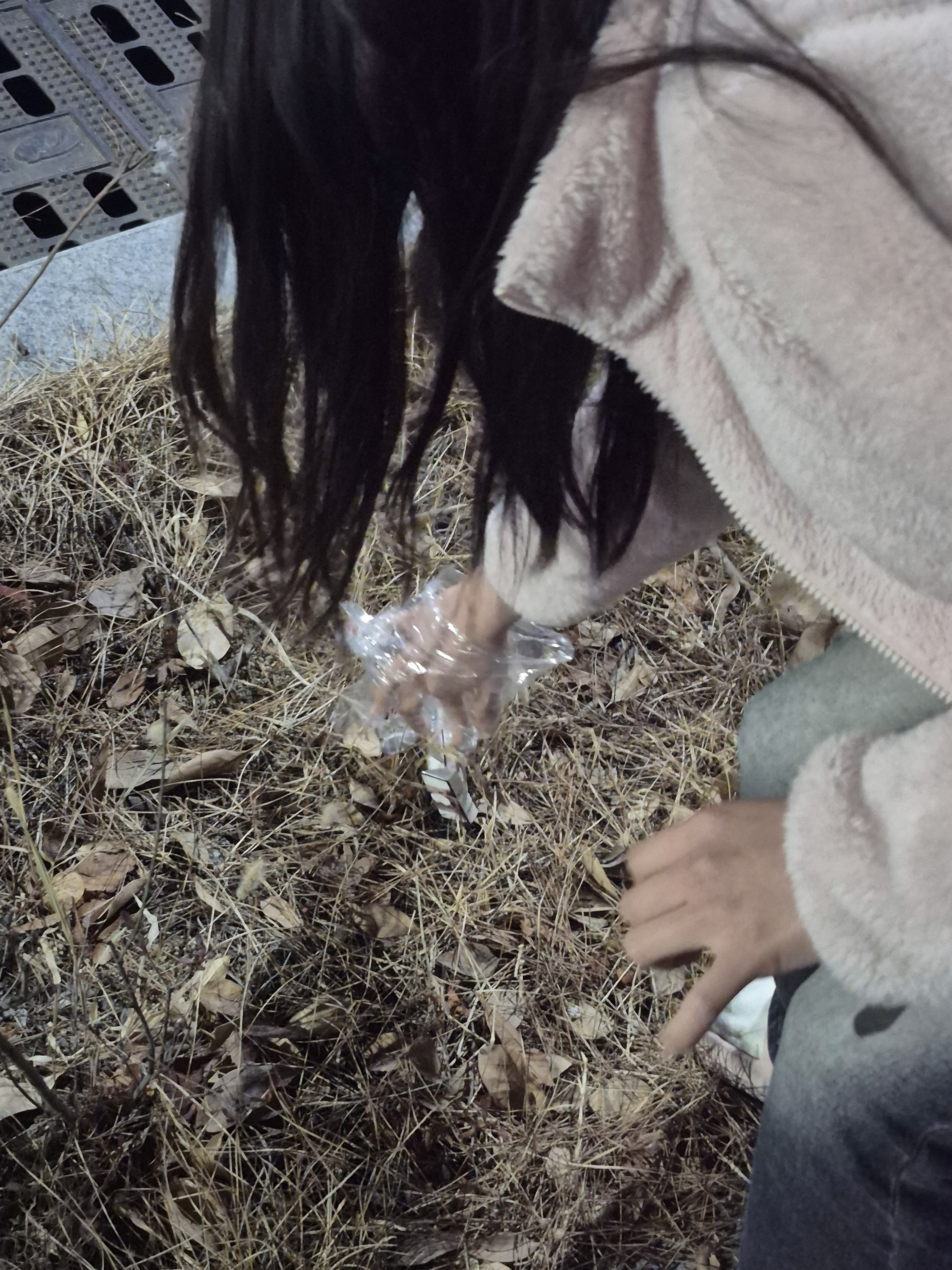 예정된 활동 시간이 변경되어 해가 진 뒤에 도남지 인근 도로로 나가게 되었습니다. 주변이 어두워 시야가 제한적이었고, 길가에 버려진 쓰레기를 한눈에 파악하기가 쉽지 않았습니다. 이에 팀원들은 비교적 밝은 가로등 주변과 차량 통행이 적은 도로 가장자리를 중심으로 활동 범위를 정해 청소를 진행하였습니다. 인도 틈 사이에 끼어 있는 쓰레기와 풀숲 근처에 버려진 쓰레기를 하나씩 찾아 수거하였습니다. 서로 발견한 쓰레기 위치를 알려주며 효율적으로 이동했고, 짧은 시간이었지만 집중해서 활동을 마무리할 수 있었습니다.