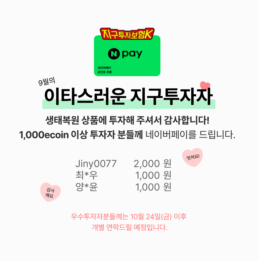 9월 생태복원 상품 투자에 참여해주신 모든 여러분께 감사드리며,